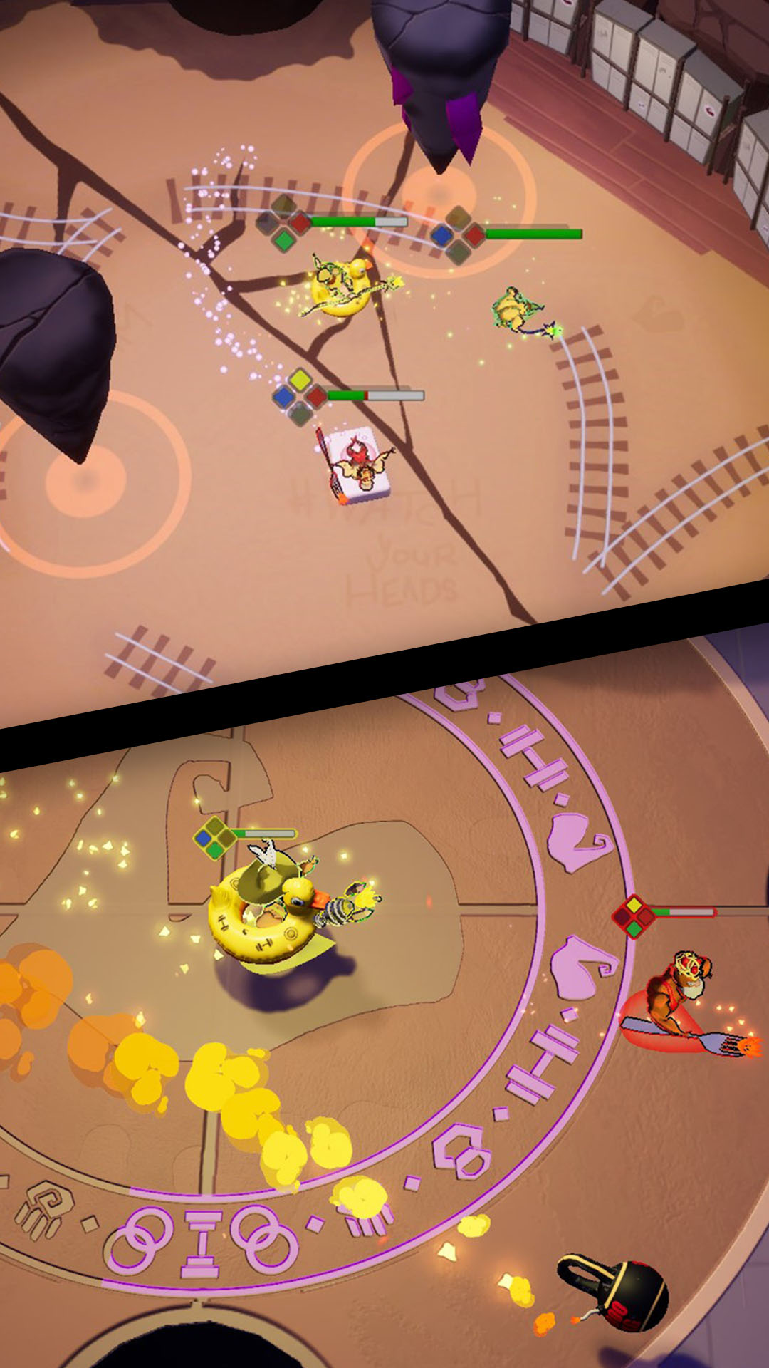 A local multiplayer topdown arena brawler where muscular wizards fight it out